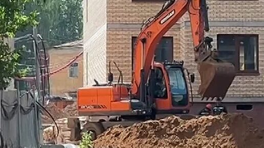На стройке кипит работа — сейчас прокладываем все необходимые коммуникации. На видео - экскаватор аккуратно готовит место под инженерные сети.