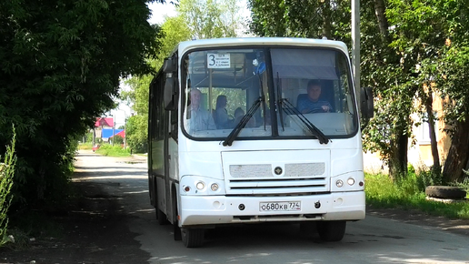 Автобус Алапаевска ПАЗ-320402-05 №О 680 КВ 774 маршрут 3 следует по улице Защиты