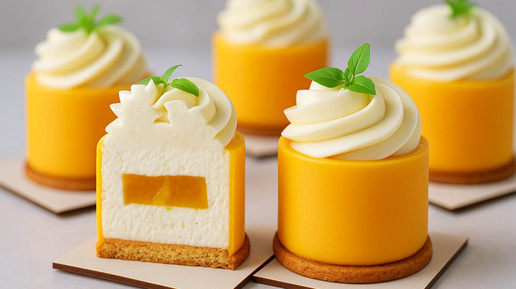 Чизкейки без выпечки Йогурт-Манго-Базилик в современном формате/ Рецепт чизкейка без выпечки