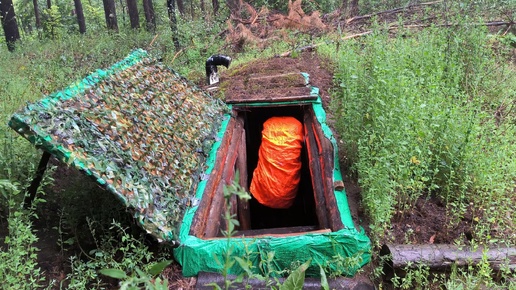 Долгожданное путешествие по лесным строениям. Попали в ливень в доме под землей. Баня у реки.