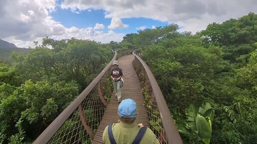 Прогулка по тропе среди крон деревьев в ботаническом саду Кирстенбош, Кейптаун