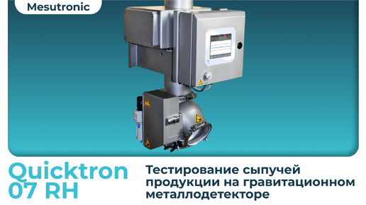 Тестирование сыпучей продукции (макарон) на гравитационном металлодетекторе. Модель Quicktron 07 RH (Mesutronic)