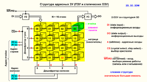 Видеоурок 4.49. Структура адресных статических ОЗУ и ПЗУ. Часть 2.