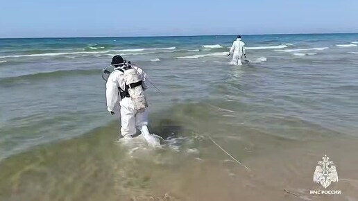 МЧС России продолжает собирать нефтепродукты в Керченском проливе