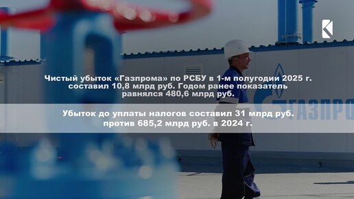 «Газпром» почти в 10 раз сократил убыток в 1-м полугодии 2025 г.
