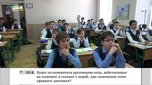 Устная задача на изменение архимедово силы действующей на стакан с камнем.