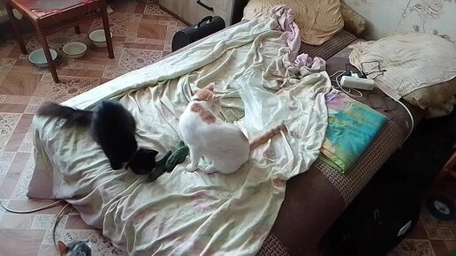 Видеосъемка игр восьми кошек.