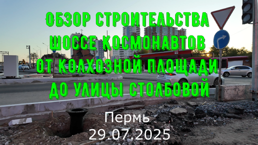 Обзор строительства в Перми шоссе Космонавтов от Колхозной площади до улицы Столбовой 29.07.2025