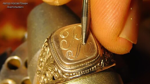 Ручная гравировка инициалов "Р.А." на серебряной печатке. Гравировка пневмоштихелем на кольце.