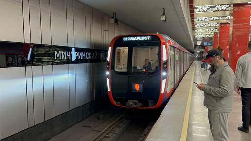 Метропоезд «Дейна/Москва-2020» (81-765/766/767) №19 на ст.м.Мичуринский проспект, июнь 2025 года