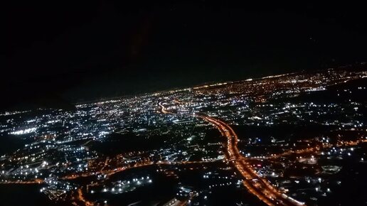 Красивый ночной взлет на А321neo, вид на Стамбул