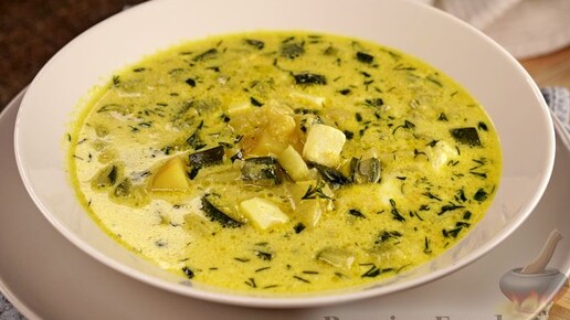 Молодые овощи с нежным сыром. Суп с цукини, картофелем и фетой