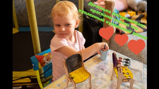 Доченька раскрашивает красками только что купленный кукольный домик😊