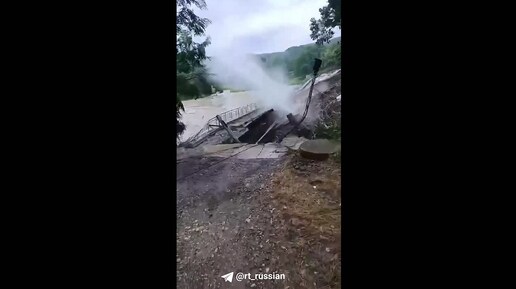 Мощный поток воды смыл мост на Кубани