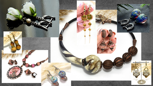 Авторские украшения из стекла и камней. Колье из выдувных бусин. Серьги с бутонами.. Серьги с тигровым глазом..