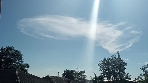 Под Солнцем висит корабль гуманоидов, сквозь себя пропускает самолет.