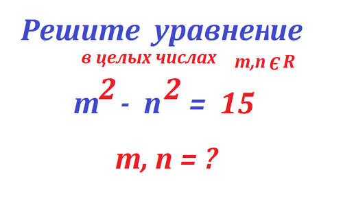 Решите уравнение m^2 - n^2 = 15 в целых числах