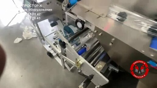 Упаковка электроприборов на сервоприводной флоупак машине с нижней подачей пленки и этикетировщиком от компании ПРОСТОР-К