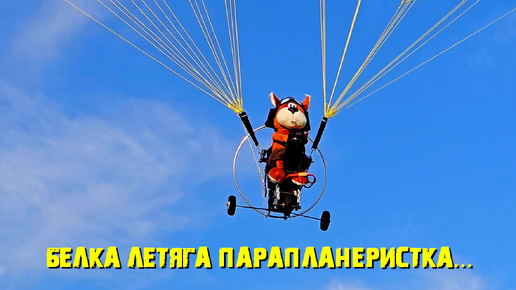 Первый полет пилота Белка Летяга на радиоуправляемом мотопарапане "РОССИЯ"