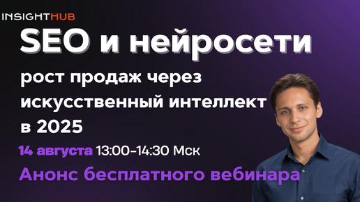 Анонс бесплатного мероприятия "SEO и нейросети: рост продаж через искусственный интеллект в 2025"
