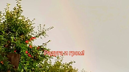 Грозовое утро! Мишка и его несчастье! Так не любит дождь! Радуга на небе! Немного мокрых цветов.
