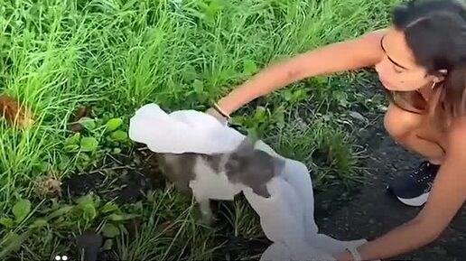 Девушка не смогла пройти мимо напуганной уличной собаки