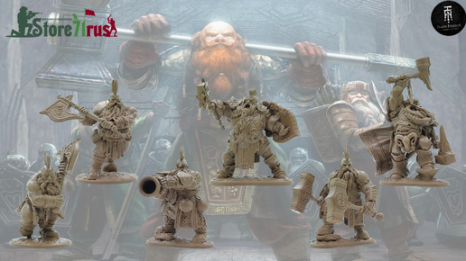 TIHONFIGUREN - ГНОМЫ, "СЕКИРА, ПИВО, БОРОДА", НАБОР #1 / DWARFS, "AXE, BEER, BEARD", SET #1