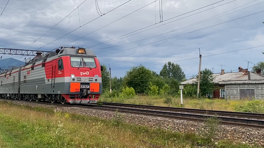 3ЭС5К-954 с грузовым поездом следует через о.п. Мурино ВСЖД