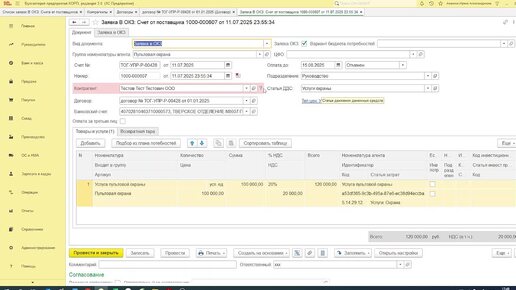 Заявка на платеж. Частичная предоплата по полученным счетам от поставщика