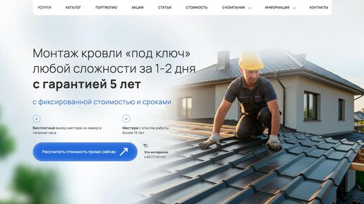 Шаблон готового сайта монтаж ремонт кровли (кровельные работы) на Wordpress