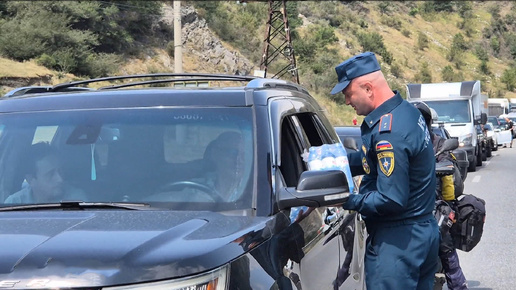 Людям, ожидающим проезда через пункт пропуска "Верхний Ларс", доставили питьевую воду