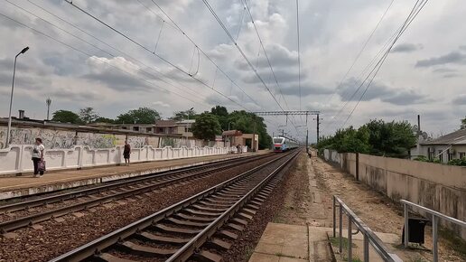 Прибытие и отправление электропоезда ЭП2Д-0115 ЮППК на платформе 1457й километр