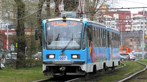 Трамвай Екатеринбурга УТМ 71-405 СМЕ борт. №007/008 следует по маршруту 24