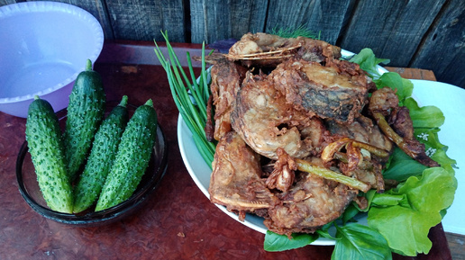 карп в казане, шашлык, вечерние посиделки