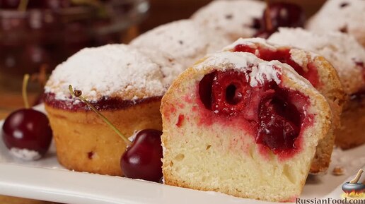 Быстрая выпечка к чаю или кофе. Маффины с вишней