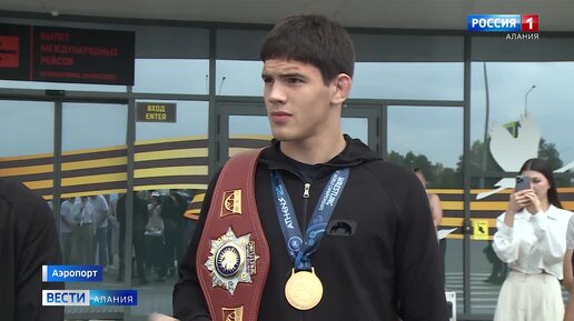 В аэропорту "Владикавказ" торжественно встретили победителя и призера первенства мира по вольной борьбе