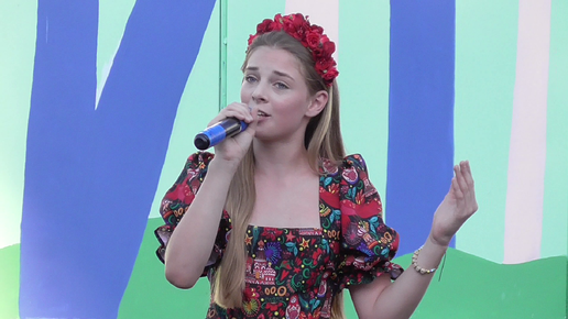 Девушка поёт песню. Песня: Наливное яблочко. Праздник: День города Орла, 2025 год.