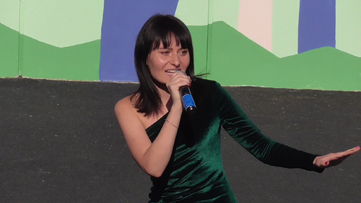 Девушка поёт песню, песня: Луч. Первая строка из песни: Солнечным лучом, как золотым ключом