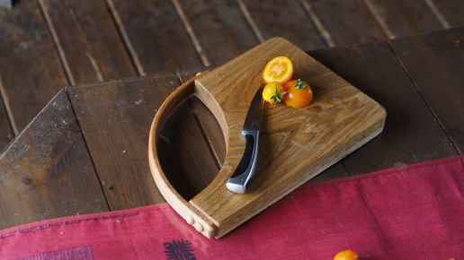 Необычная разделочная доска с гнуто-клееной ручкой изготовлена как пособие для столярного видеокурса
