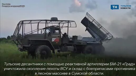 Тульская ракетная артиллерия БM-21 «Град» нанесли удар по украинским войскам и складу боеприпасов Сумской области