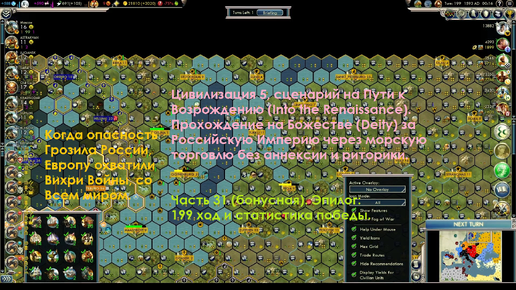 Civilization 5, Россия на Пути к Возрождению на Божестве. Часть 31, запоздавший эпилог. 199-200 ход, 1593-1595 г. экран победы и статистика