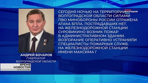 Андрей Бочаров прокомментировал ситуацию в Волгоградской области после атаки БПЛА