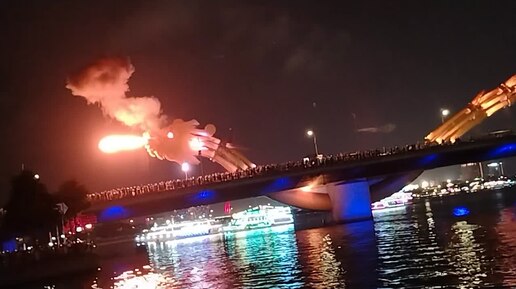 Шоу огнедышащего Дракона на мосту в Дананге. Вьетнам 2025