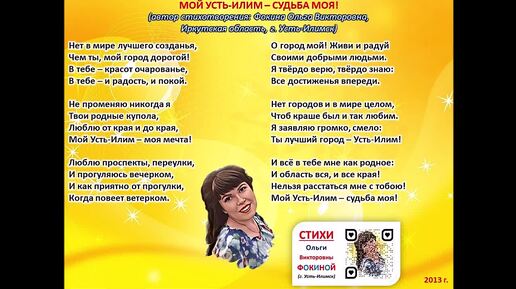 Ольга Фокина (Усть-Илимск) - МОЙ УСТЬ-ИЛИМ - СУДЬБА МОЯ (читает автор)