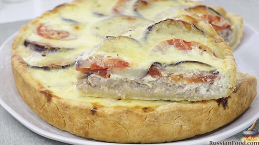 Несладкая летняя выпечка. Пирог с фаршем и баклажанами