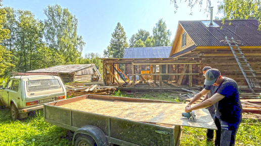 Новое хуторское здание обретает объём. Обшиваем стены и вставляем окна. Крыша прошла испытание