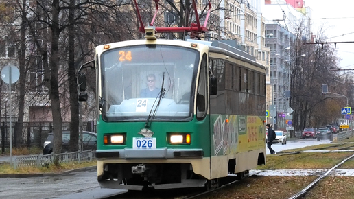 Трамвай Екатеринбурга УТМ 71-405-11 борт. №026 маршрут 24 следует по улице Кузнецова