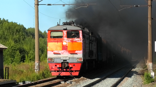 "Копченые небеса". 2ТЭ10М-2081 с хозяйственным поездом следует через о.п. Социалистический