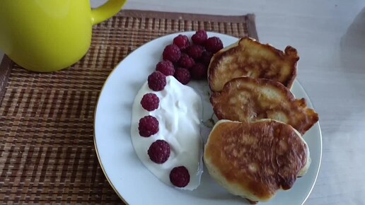 На завтрак оладьи с малиной😋. Краски лета в саду🌼🌸🌹
