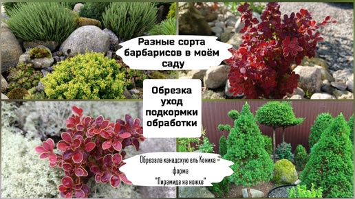 Разные сорта барбарисов в моём саду. Обрезка, уход, подкормки, обработки. Формирующая обрезка ели канадской Коника.